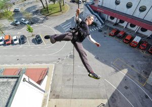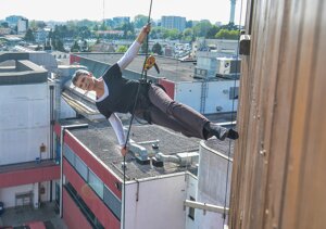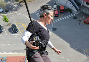 Wanda Moretti, a choreographer and researcher, her dance studies focus on systems of proportion and the harmony of space. She has pioneered vertical dance in Italy since the 1990s, developing and spreading this practice to create VST (Vertical and Suspension Training), a method now internationally recognized. Her research and artistic project concerns the relationship with architecture and landscape and how every movement performed in space derives from the relationship between the movement itself and the specific point on the wall to which the moving rope is attached. In 1994, in Venice, she founded Il Posto Company with the composer and musician Marco Castelli.